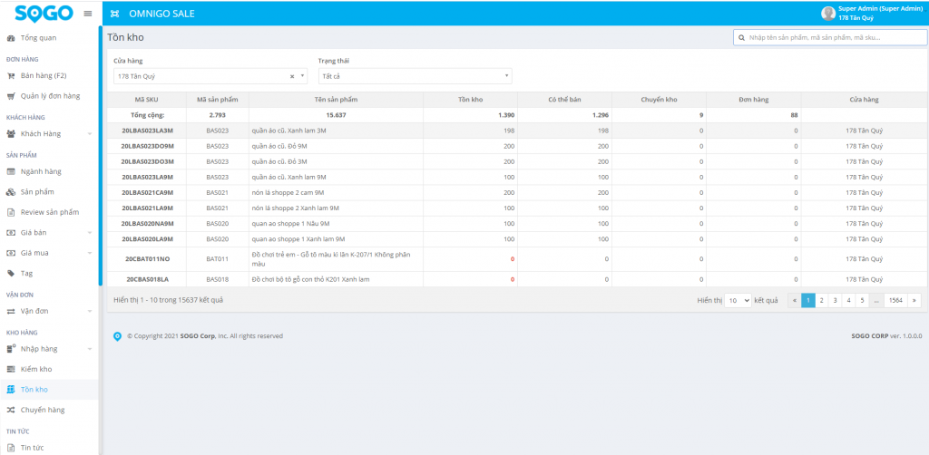 SOGO Omnichannel CRM cho phép bạn quản lý tồn kho sản phẩm của các chi nhánh chỉ với một cú click chuột.